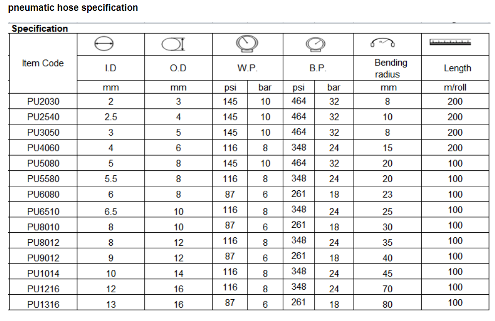 و )عملکرد عالی مقاومت در برابر فشار بالا، لرزش، خوردگی، ساییدگی و خمش شلنگ هوای PU.